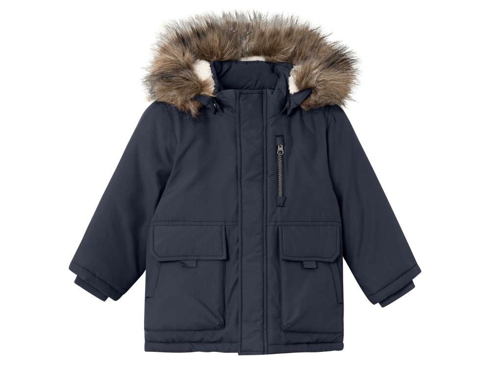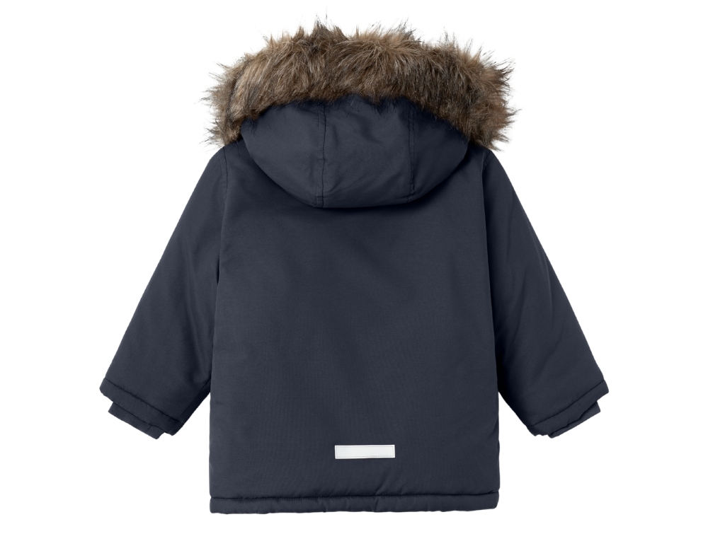 Parka vinterjakke i farven dark sapphire med aftagelig hætte med velcro og trykknapper fra Name It.