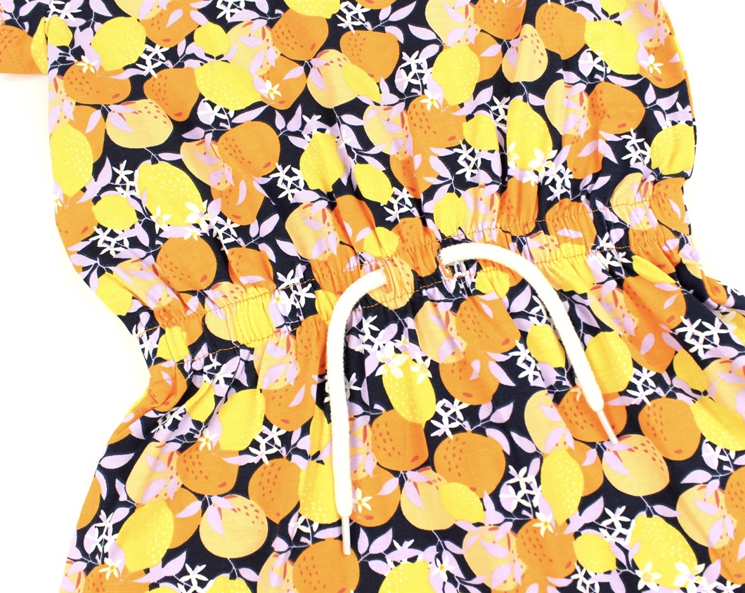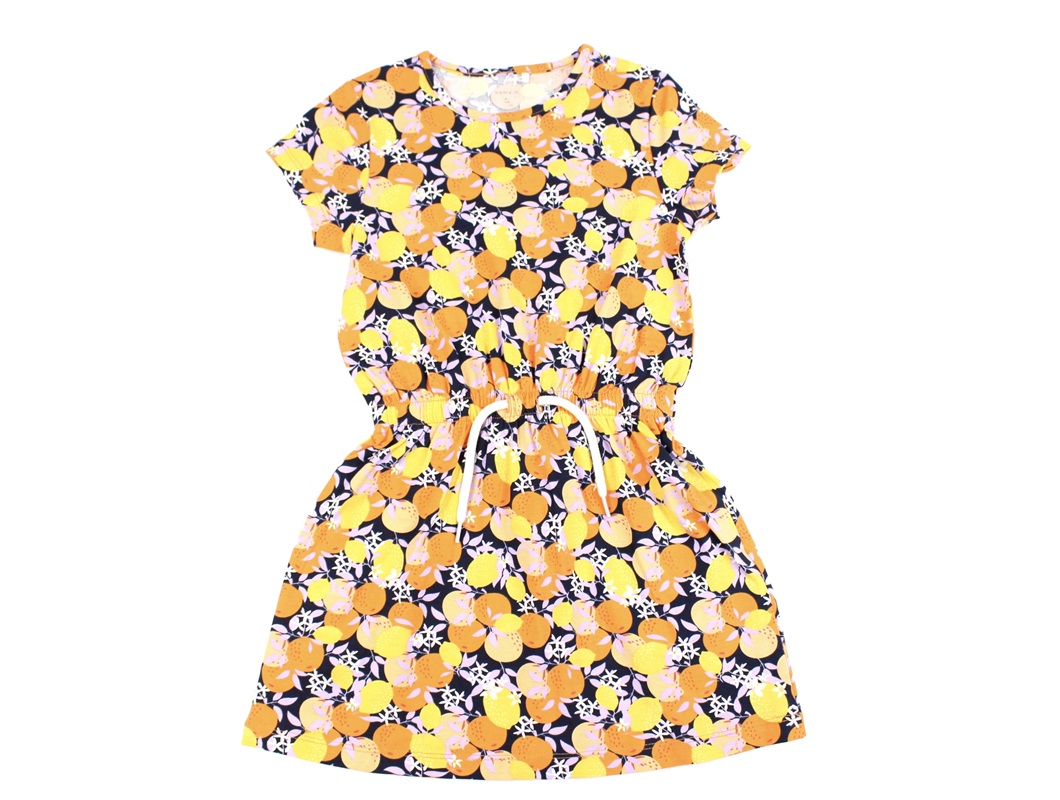 Kjole i farven dark sapphire med frugtprint fra Name It.