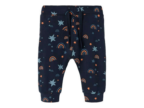 Bløde bukser i farven dark sapphire med regnbueprint fra Name It.
