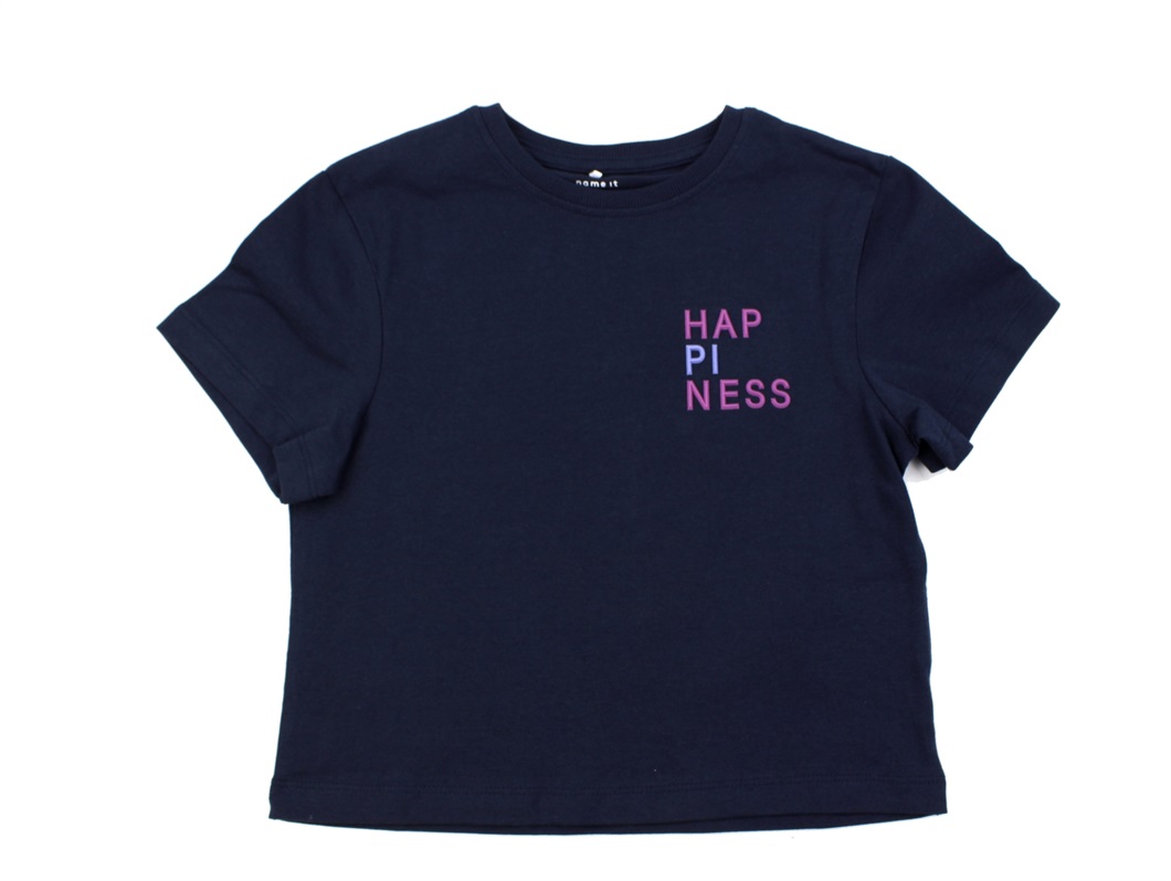 Kort løs t-shirt i farven dark sapphire med tekst-applikation fra Name It.