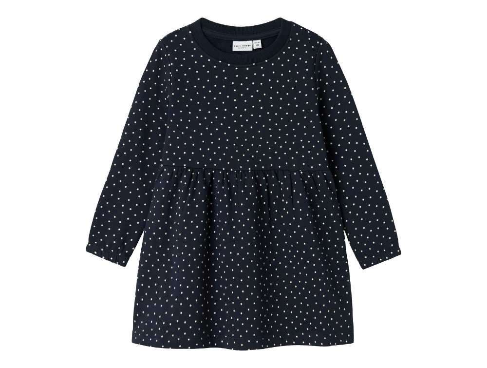 Sweatkjole i farven dark sapphire med prikker fra Name It.