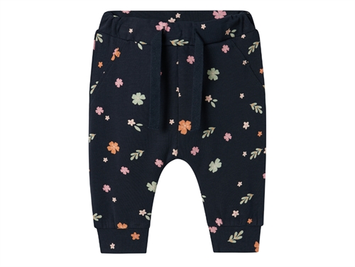Bløde bukser i farven dark sapphire med blomsterprint fra Name It.