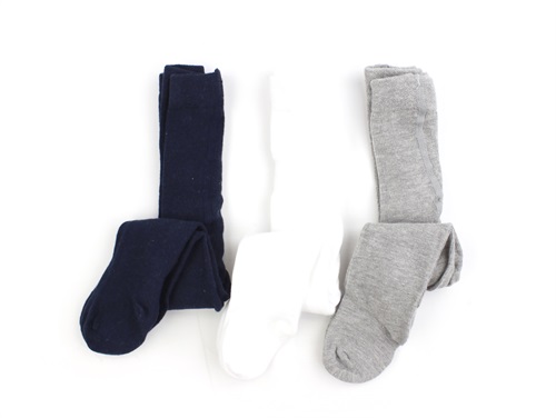 3 par strømpebukser i farverne marineblå, hvid og grå fra Name It.