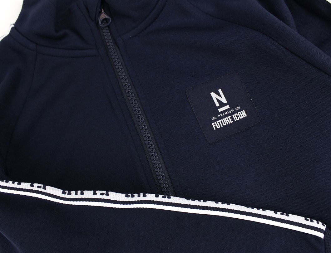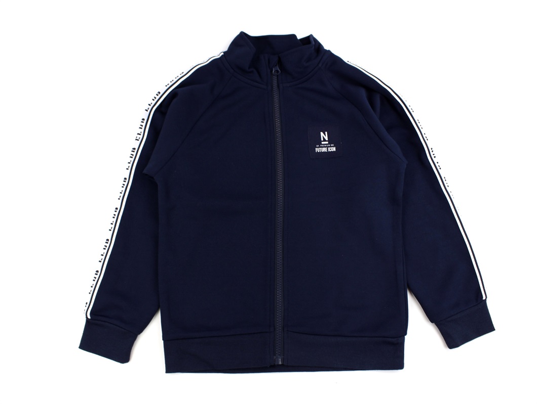 Cool sporty sweatcardigan i farven dark sapphire med lynlås og hvidt kantbånd fra Name It.
