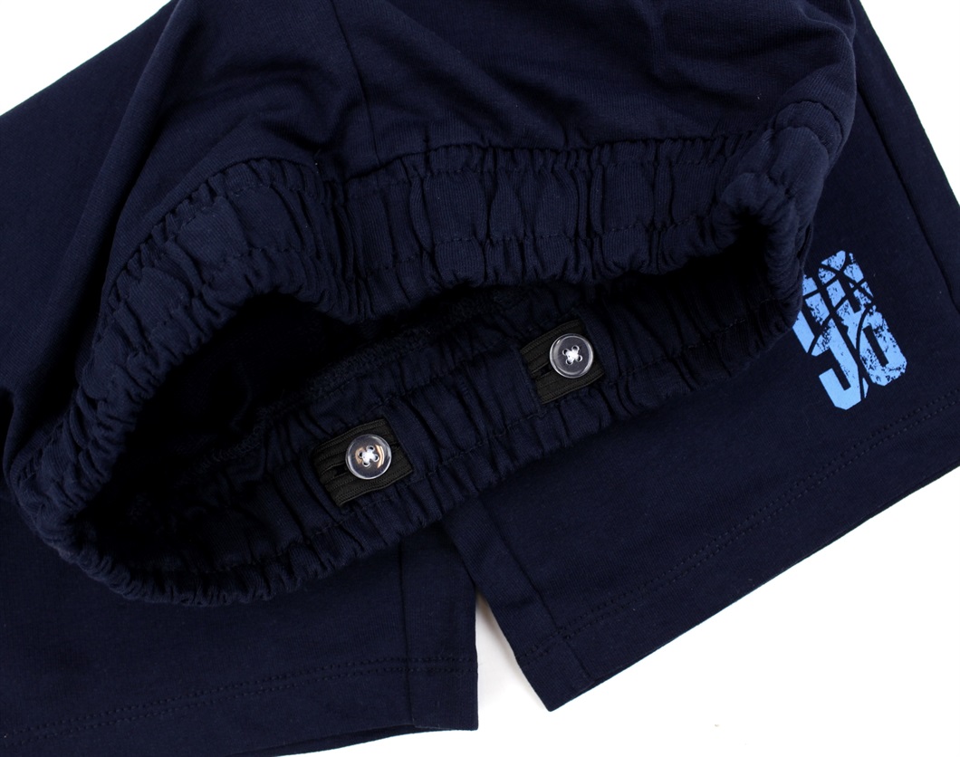 Bukserne har justerbar elastik i linningen og bindebånd. Desuden to skrålommer og lille tekst-print.