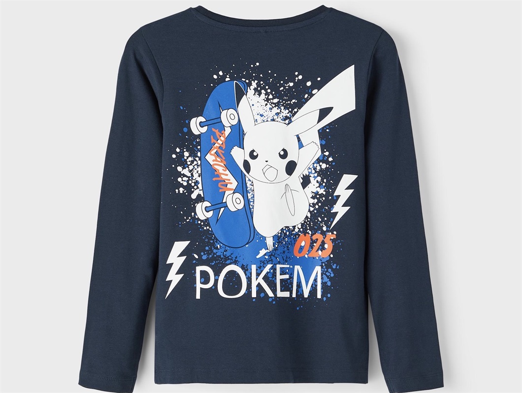 Langærmet t-shirt med Pokémonlogo på front og stort Pokémonprint på ryggen fra Name It.