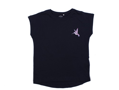Top i farven dark sapphire med lille fugleprint fra Name It.