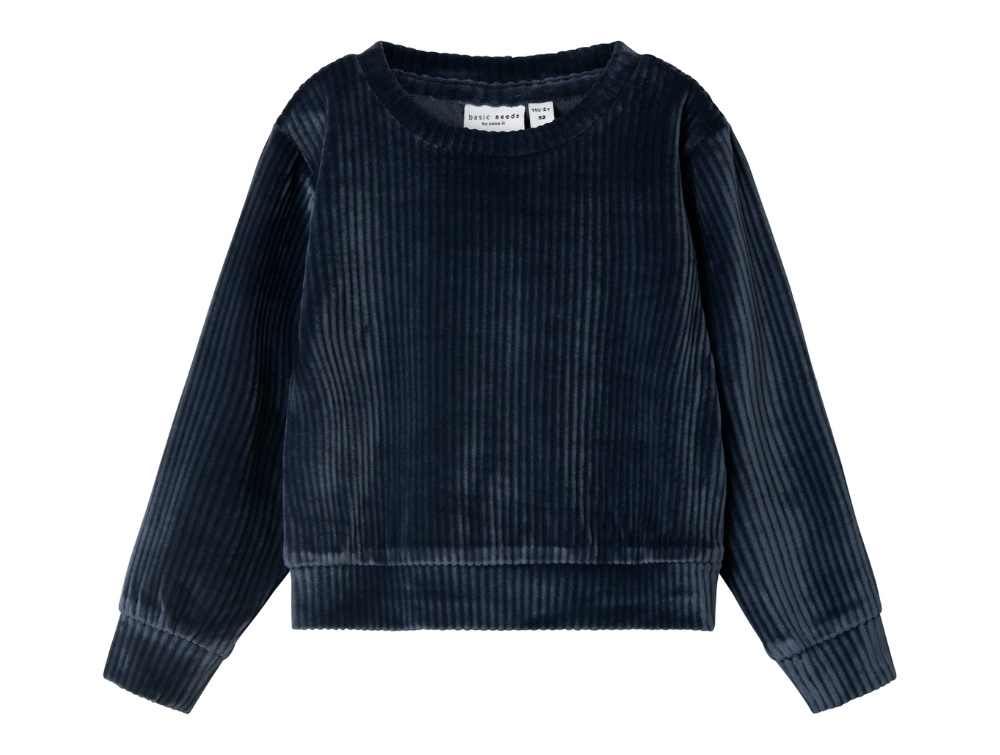 Kort bluse i farven dark sapphire i velour fra Name It.