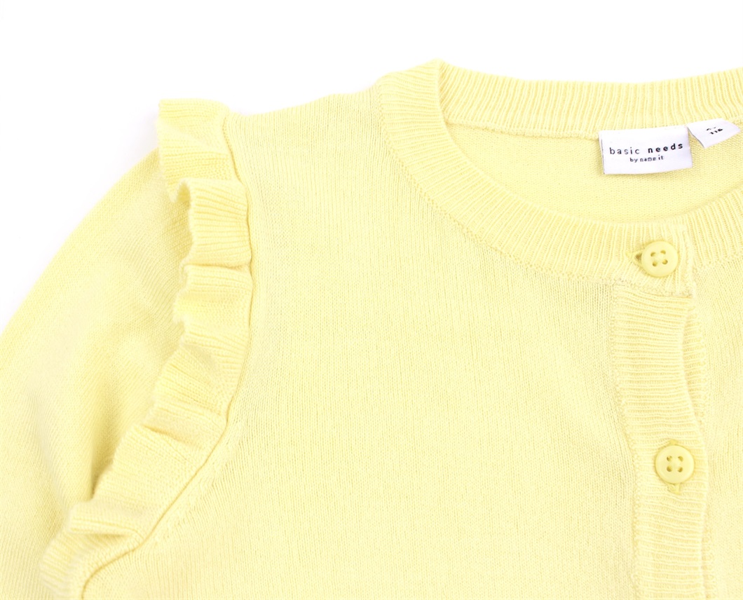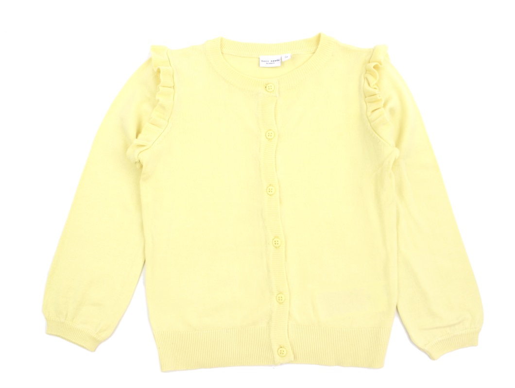 Strikcardigan i farven double cream med lille flæse på skuldre fra Name It.