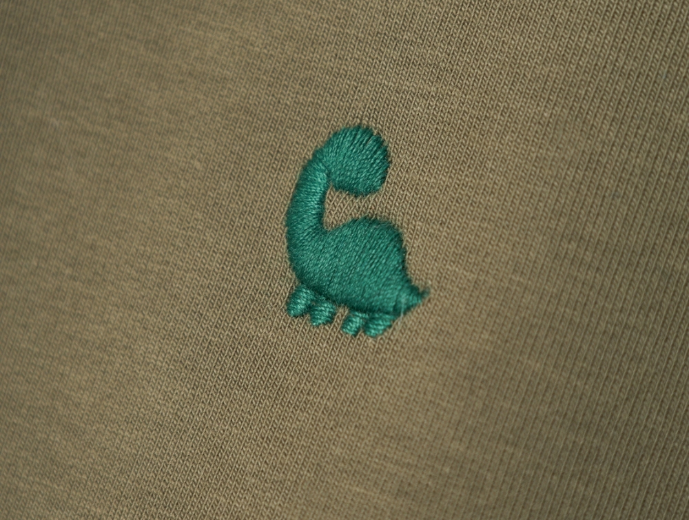Sweatbluse i farven dusty olive med dinobroderi fra Name It.