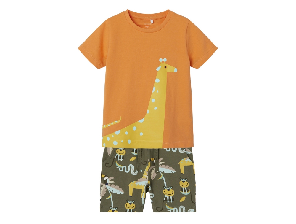 Mere information om Name It dusty olive giraf shorts/t-shirt sæt