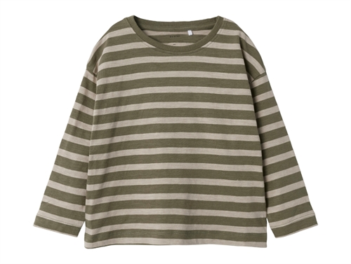 Mere information om Name It dusty olive/pure cashmere stribet top