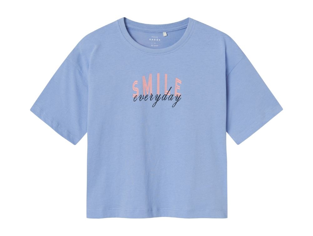 2-pak boxy t-shirts fra Name It i lyseblå og råhvid med blødt print.