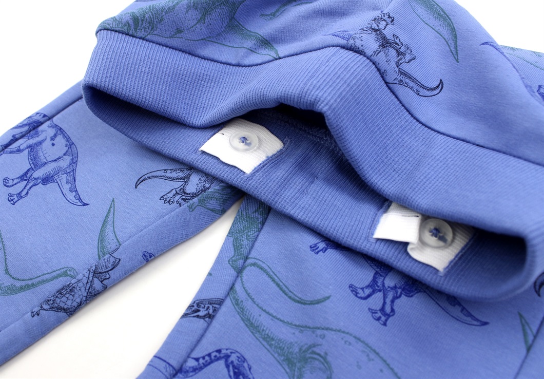 Sweatpants fra Name It i farven ebb and flow med dinoprint og t0 lommer.