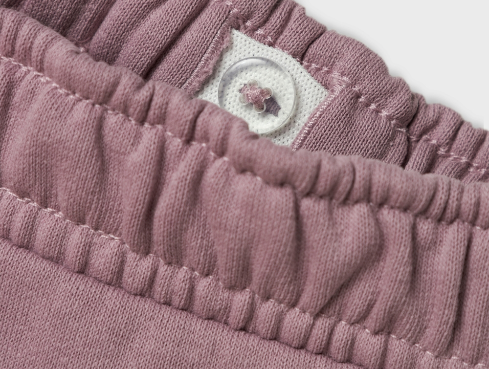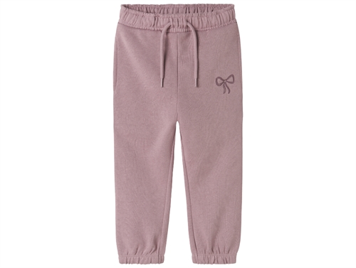 Sweatpants i farven elderberry med lille sløjfebroderi fra Name It.