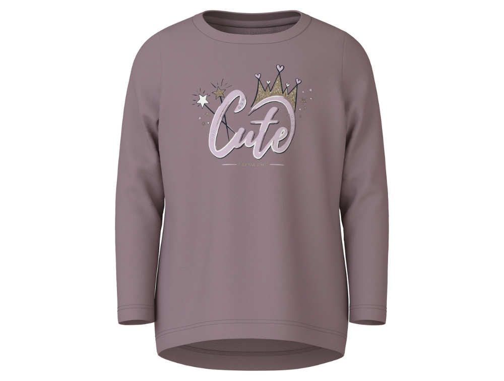 Langærmet t-shirt i farven elderberry med tekstprint fra Name It.