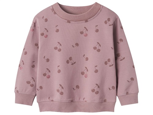 Sweatshirt i farven elderberry med kirsebærprint og glitterdetalje fra Name It.