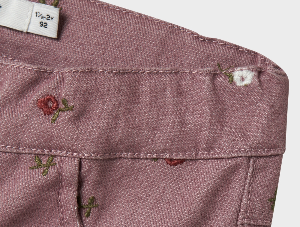 Twill bukser i farven elderberry med blomsterbroderi fra Name It.