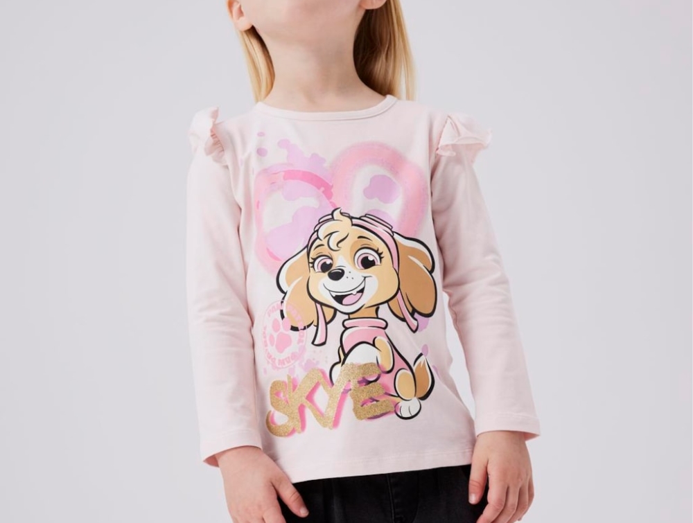 Langærmet t-shirt i farven festival bloom med Paw Patrol-print, flæser og glimmer fra Name It.