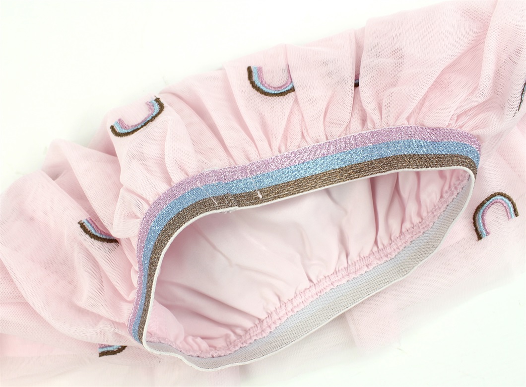 Tylnederdel i farven festival bloom med regnbue-broderi fra Name It.