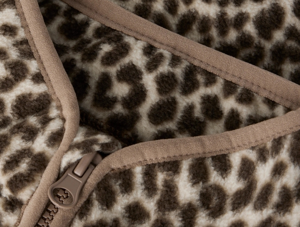 Fleecejakke i beige og brune nuancer fra Name It med allover leopardprint.