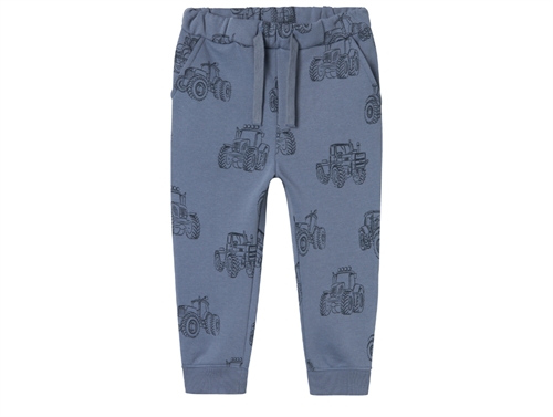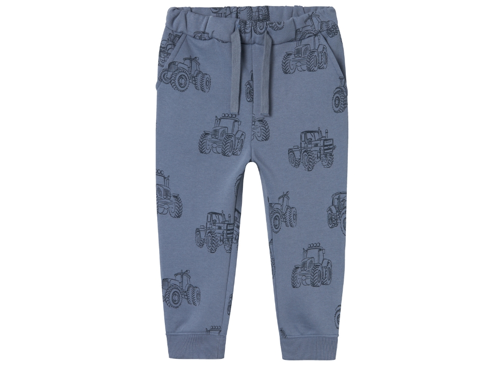 Sweatbukser i farven flint stone med traktorprint fra Name It.