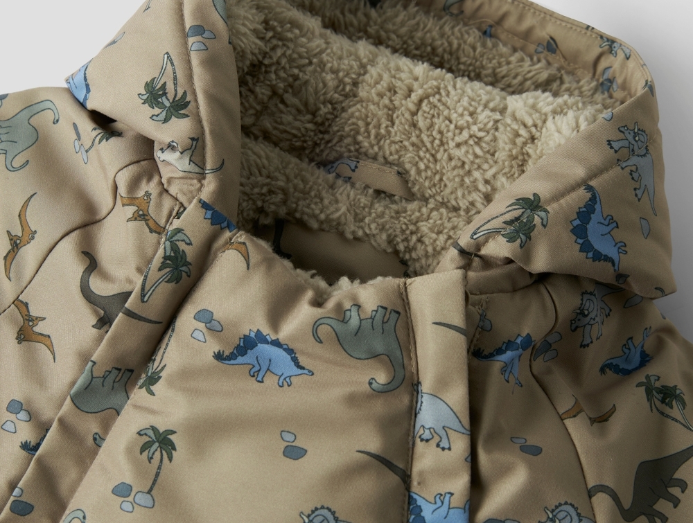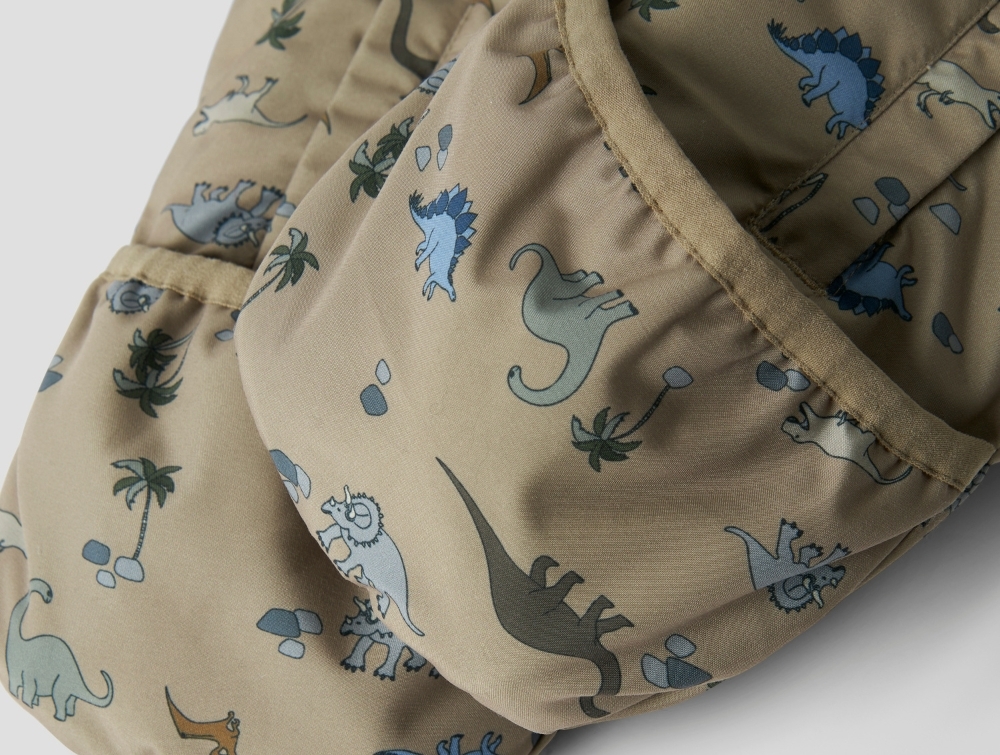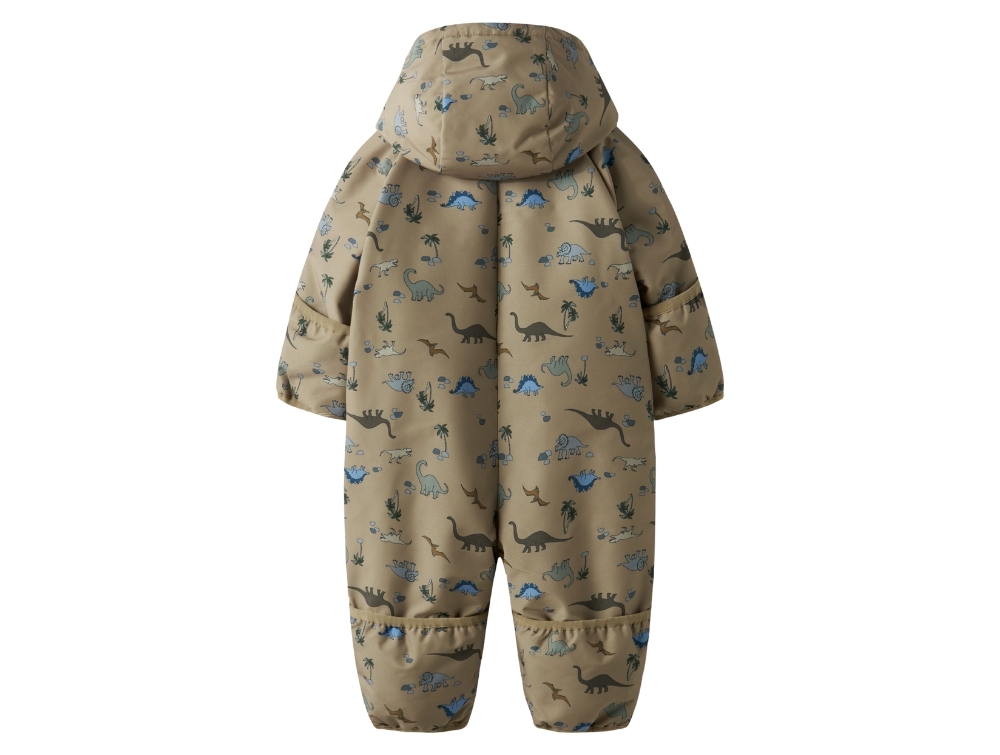 Flyverdragt i lys brun nuance (silver mink) med dinosaurprint fra Name It.