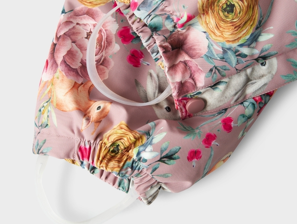 Mere information om Name It flyverdragt woodrose med blomsterprint og aftagelig hætte