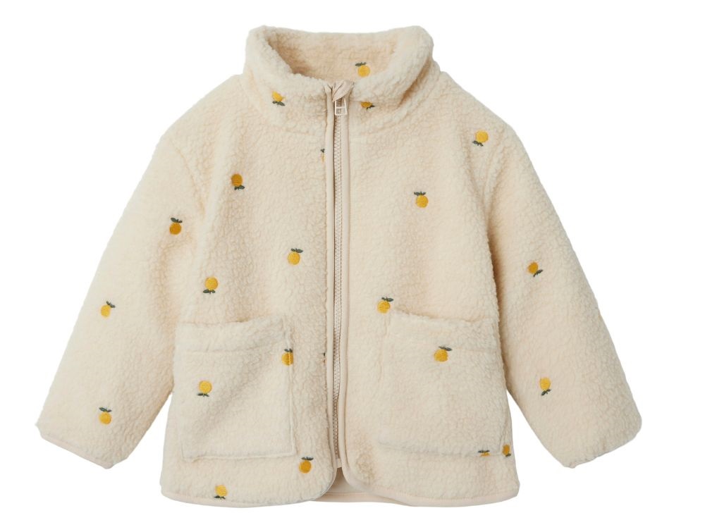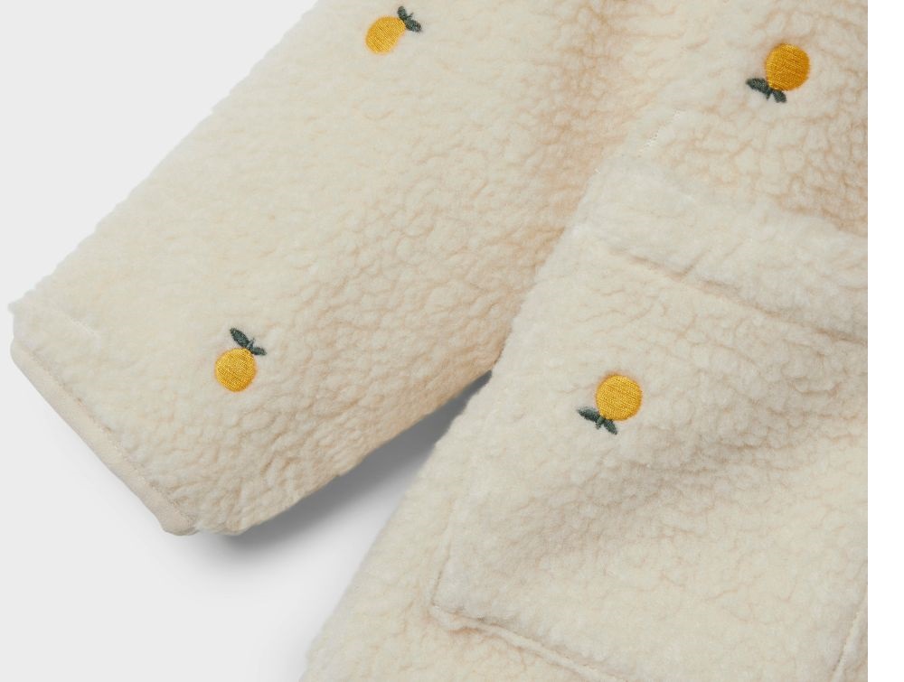 Teddyjakke i farven fog med appelsiner fra Name It.
