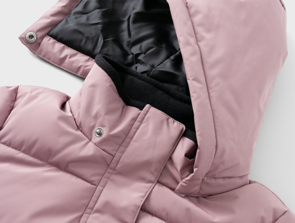 En særlig funktion er den aftagelige hætte, der giver ekstra fleksibilitet og sikkerhed. Ærmerne er lange med ribstrikkede manchetter, der holder varmen inde og kulden ude.