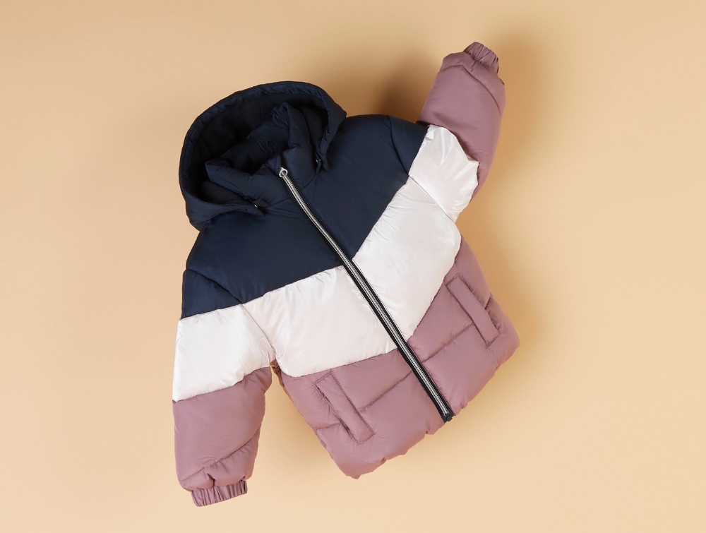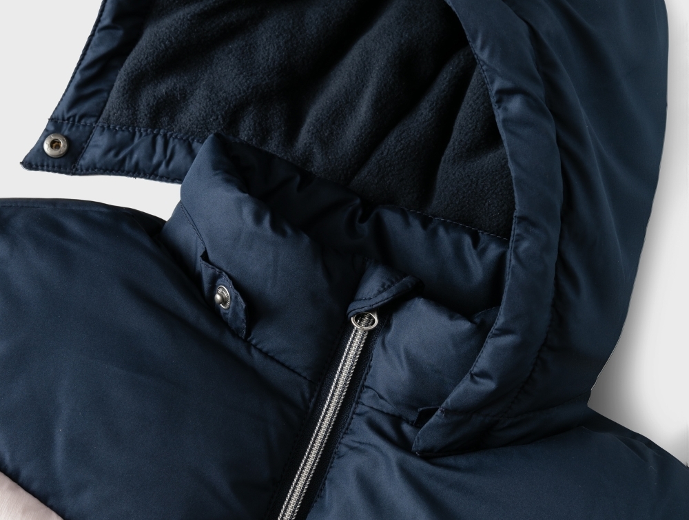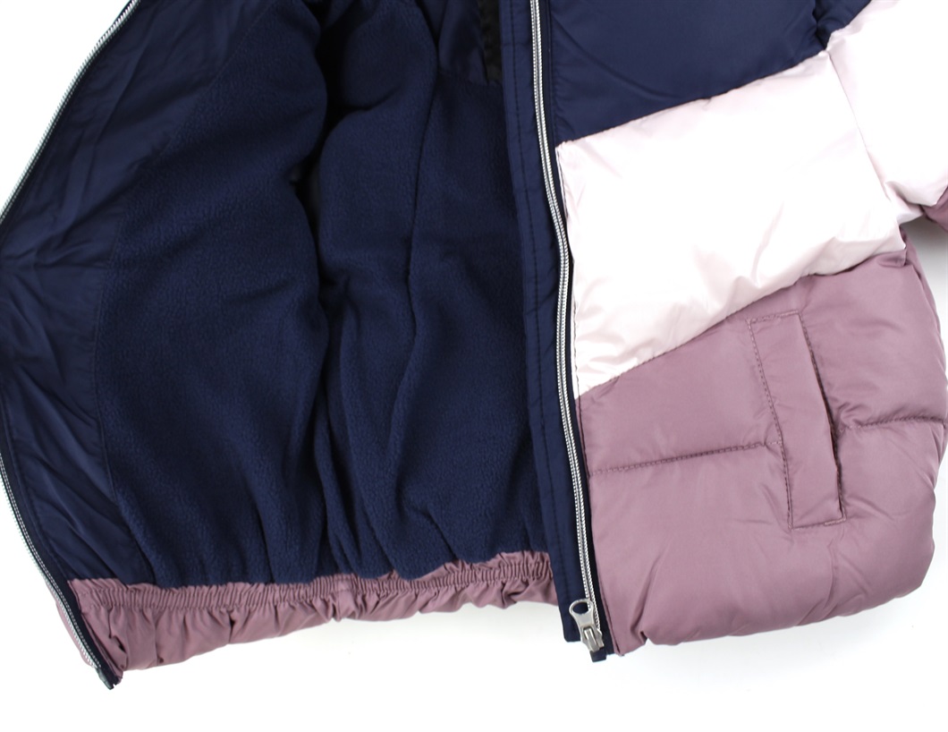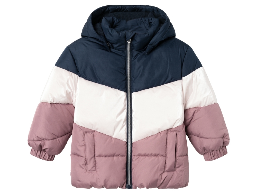 Puffer vinterjakke i farvetemaet grape shake med aftagelig hætte med trykknapper fra Name It.