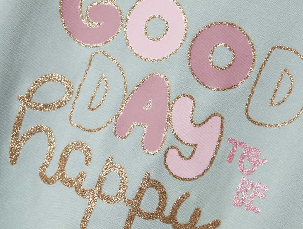 Langærmet top i farven gray mist med print og glimmer fra Name It.