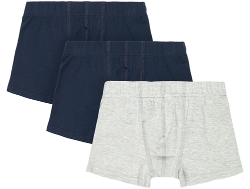 3 par boxershorts i farverne grey melange og dark sapphire fra Name It.