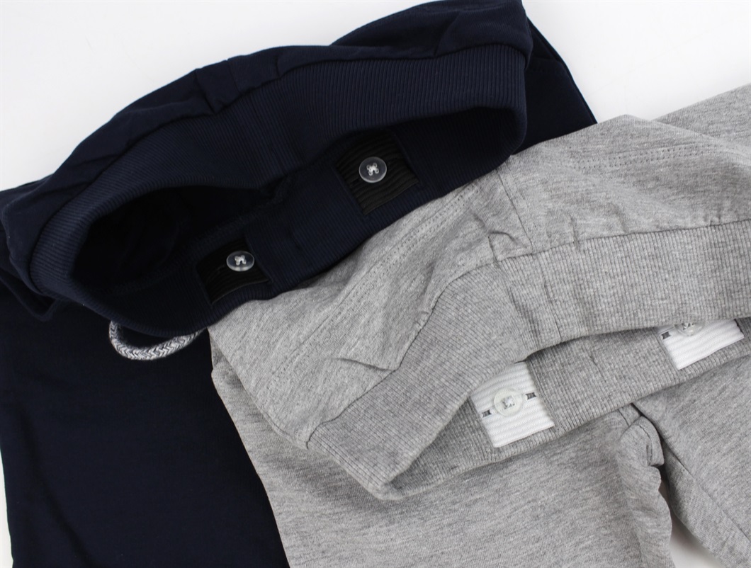 Bukserne har justerbar elastik i linningen og bindebånd.