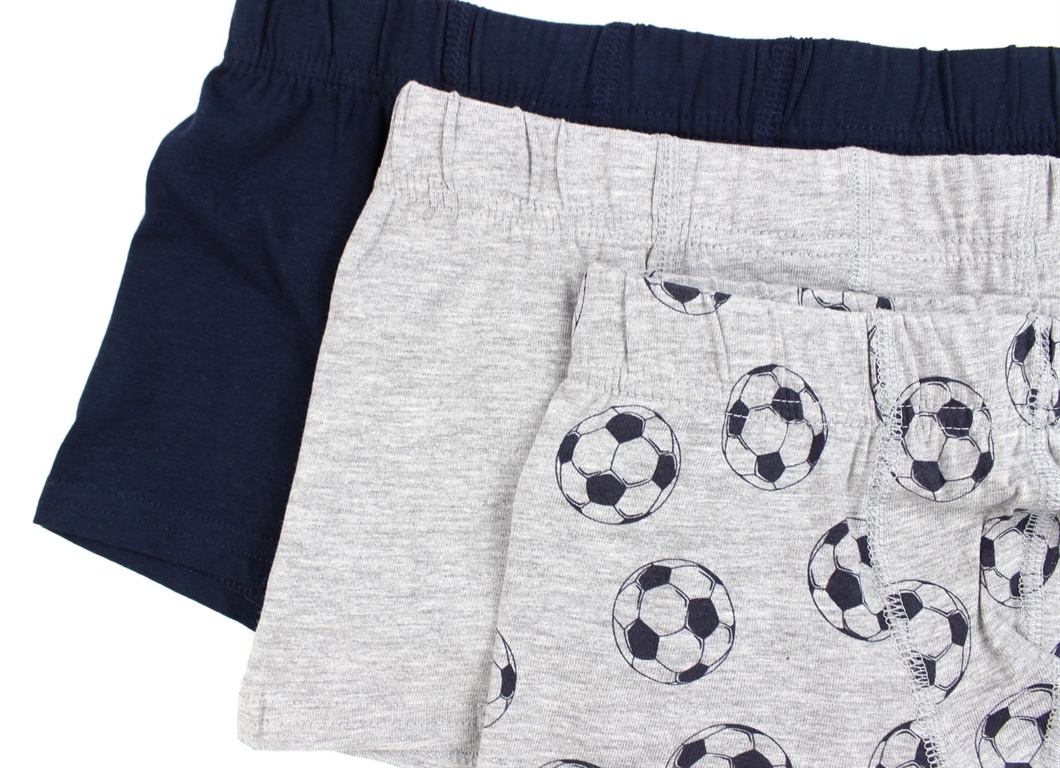 Indeholder 1 par ensfarvede i grå melange, 1 par ensfarvede i mørkeblå og 1 par grå med fodboldprint.
