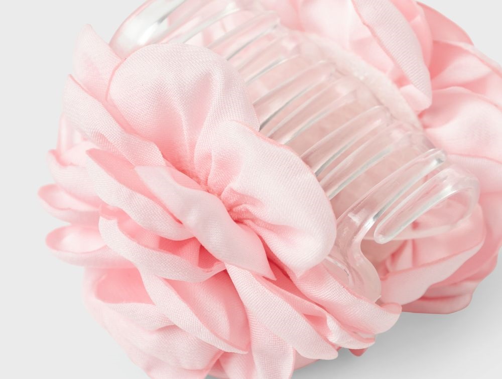 Lyserød blomsterformet hårklemme fra Name It med tredimensionel effekt.