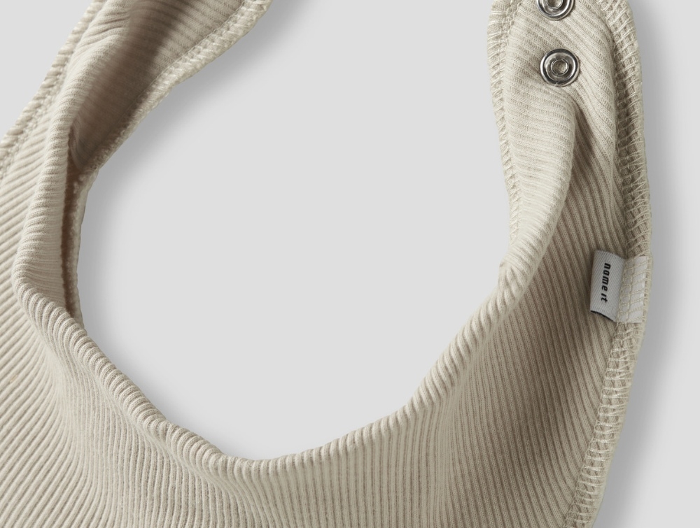 Hagesmækkerne lukkes med trykknapper i nakken og har en let trekantet form, som beskytter tøjet mod savl og pletter. En praktisk og sød detalje i hverdagen.