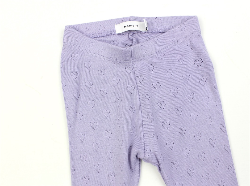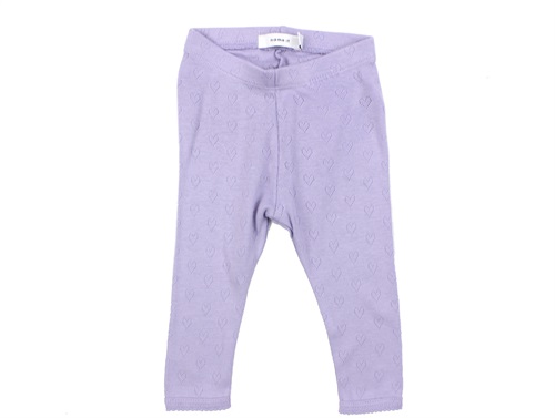 Legging i farven heirloom lilac med hjerteformet hulmønster fra Name It.