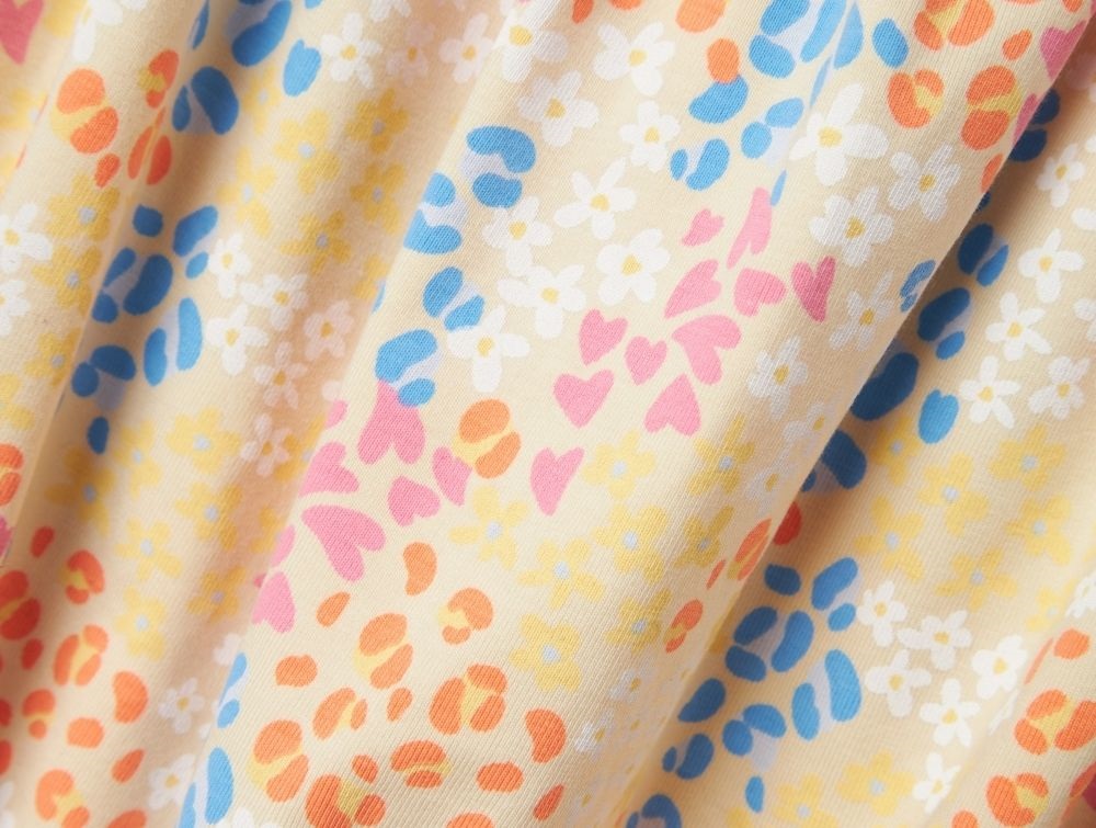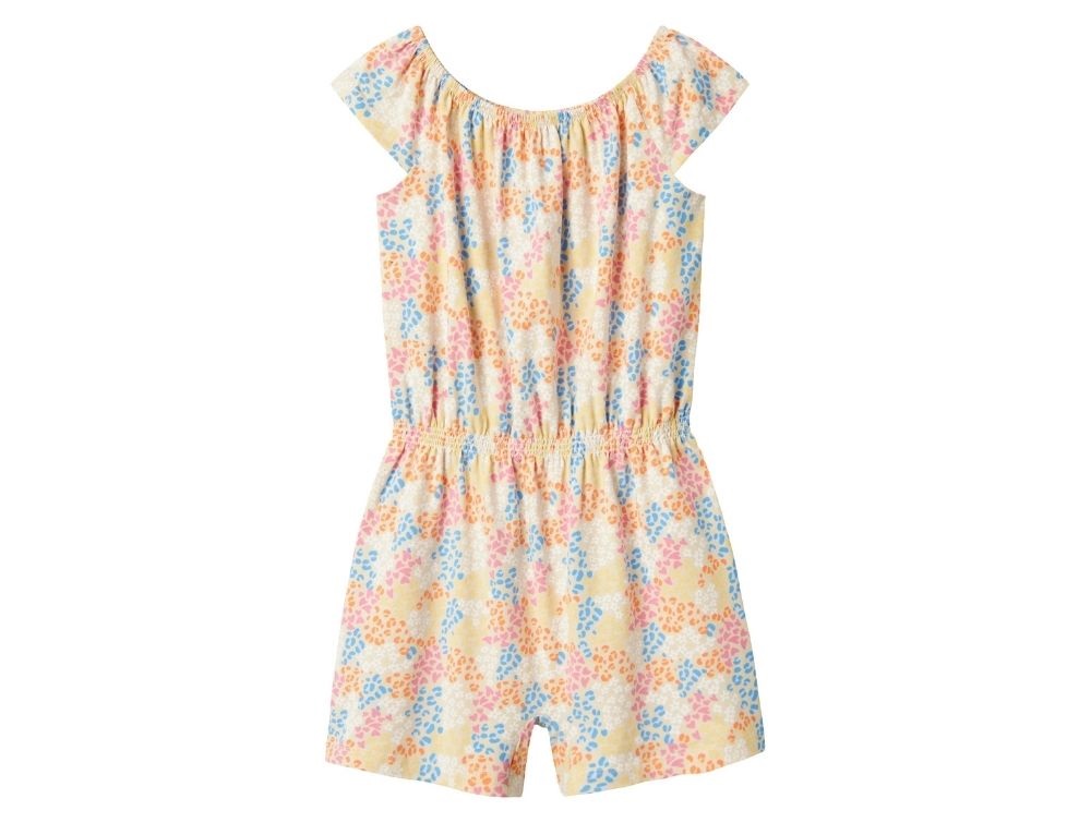 Dragten har korte ben, brede stropper og elastik med smock-effekt foroven, som sikrer en behagelig pasform. Det lette og strækbare materiale gør den velegnet til varme sommerdage med masser af leg.