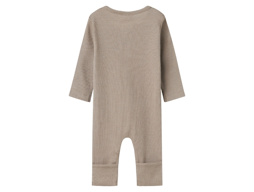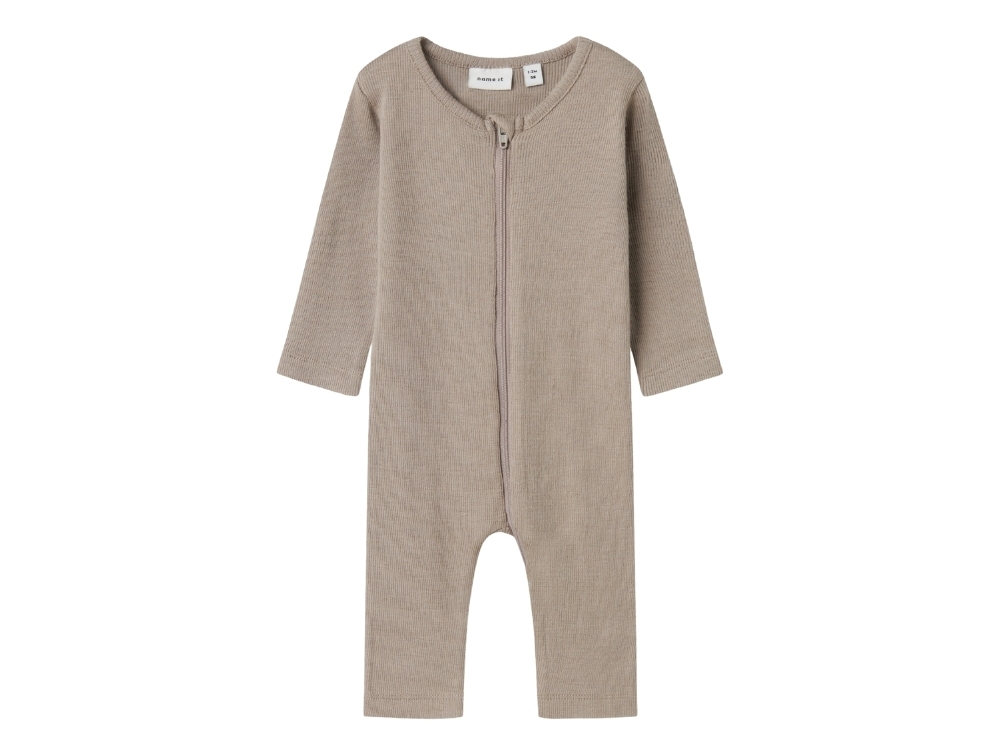 Name It heldragt i grå brun nuance med ribmønster i merinould og silke