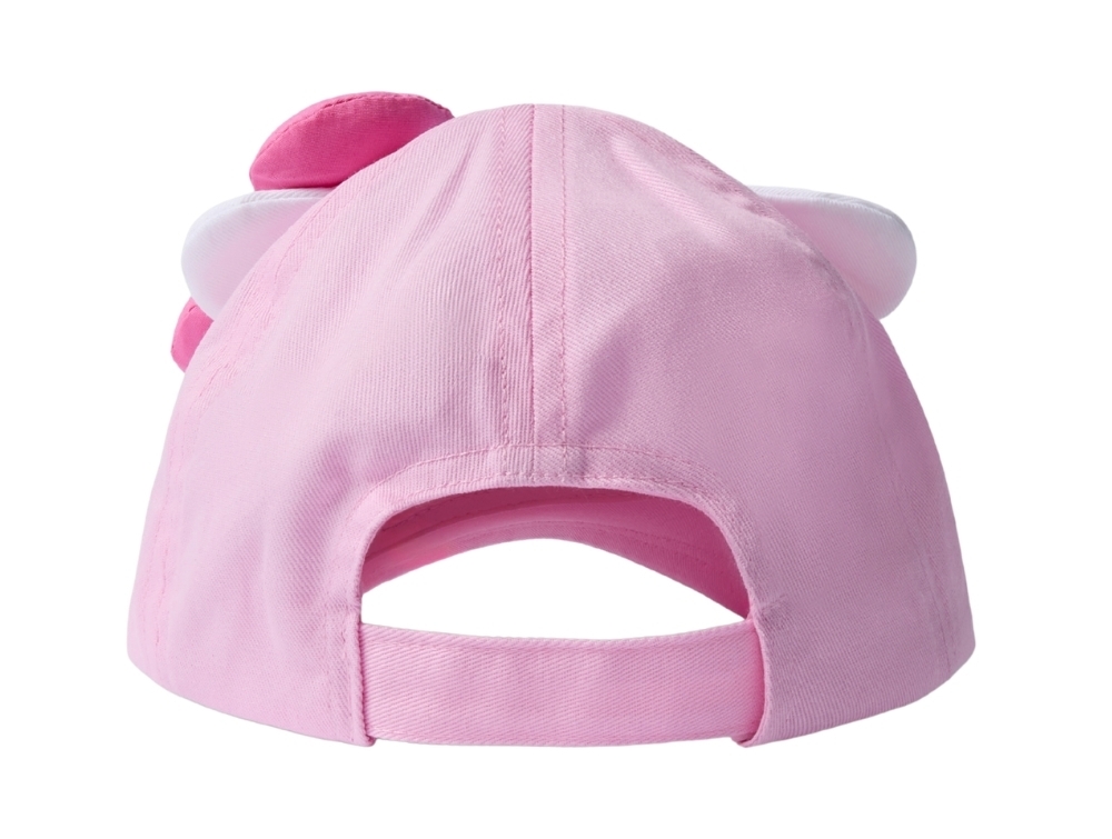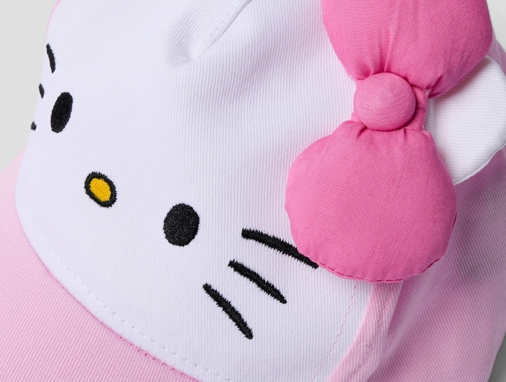 Name It kasket i lyserød nuance med Hello Kitty motivName It Hello Kitty kasket pirouette med sløjfeName It kasket til børn i lyserød nuance set bagfraDetalje af Name It Hello Kitty kasket med sløjfe