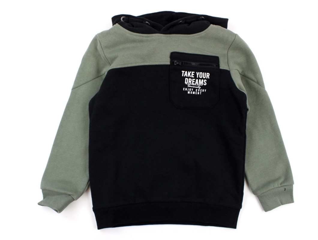 Sweatshirt/hoody i sort og agave green fra Name It.