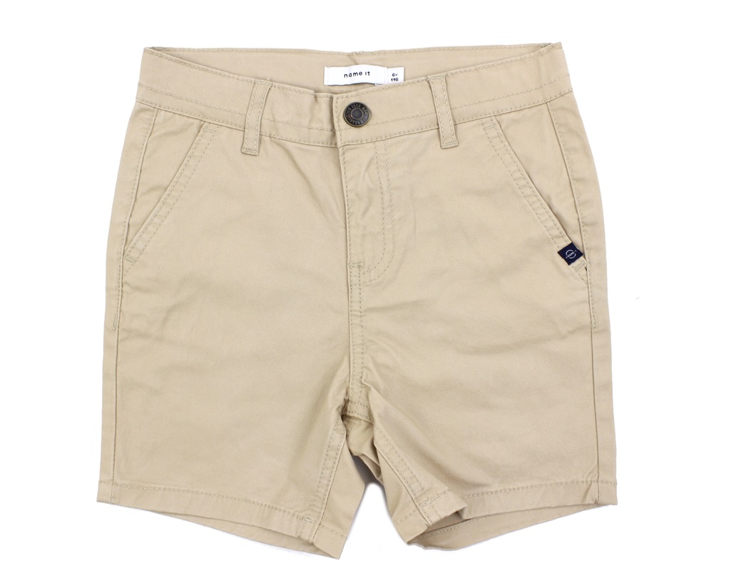 Shortsene lukkes med knap og lynlås og har justerbar elastik i linningen. Har to forlommer og to detaljelommer bag på.