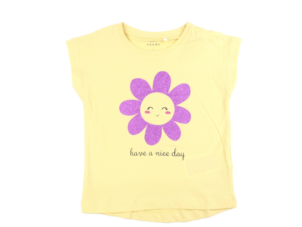 Top/t-shirt i farven impala med blomster glimmerprint fra Name It.