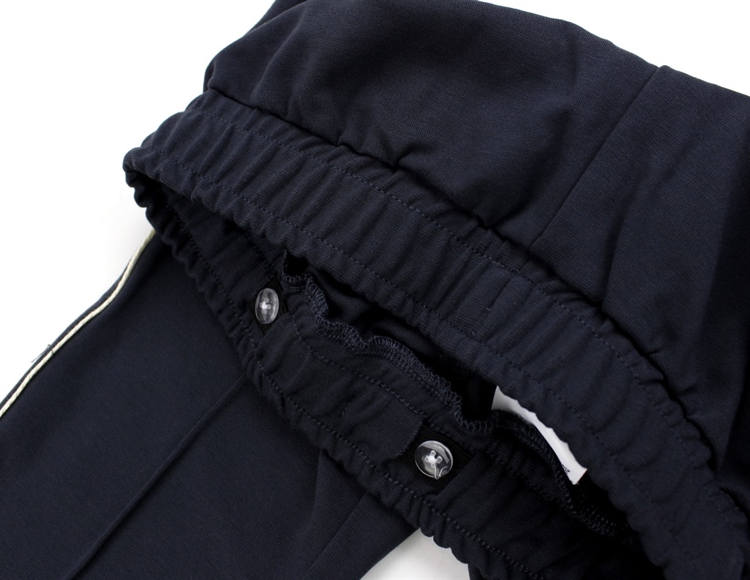 Bukserne har bindebånd og justerbar elastik i linningen samt to skrålommer.