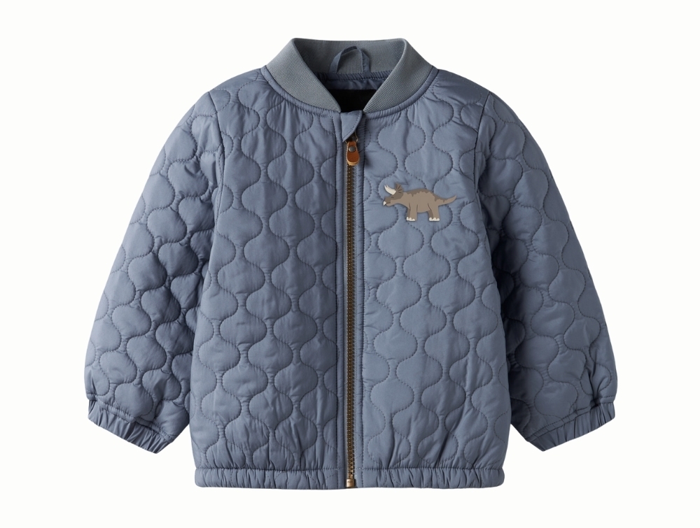 Name It quiltet jakke i blå nuance med dinosaurbroderi og lynlås