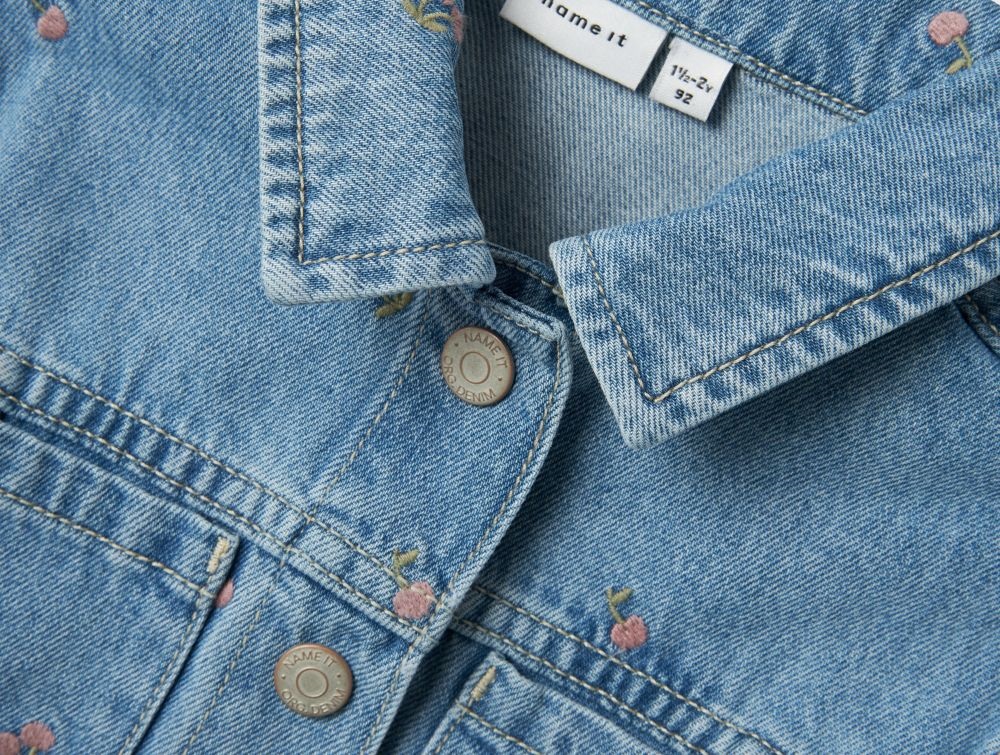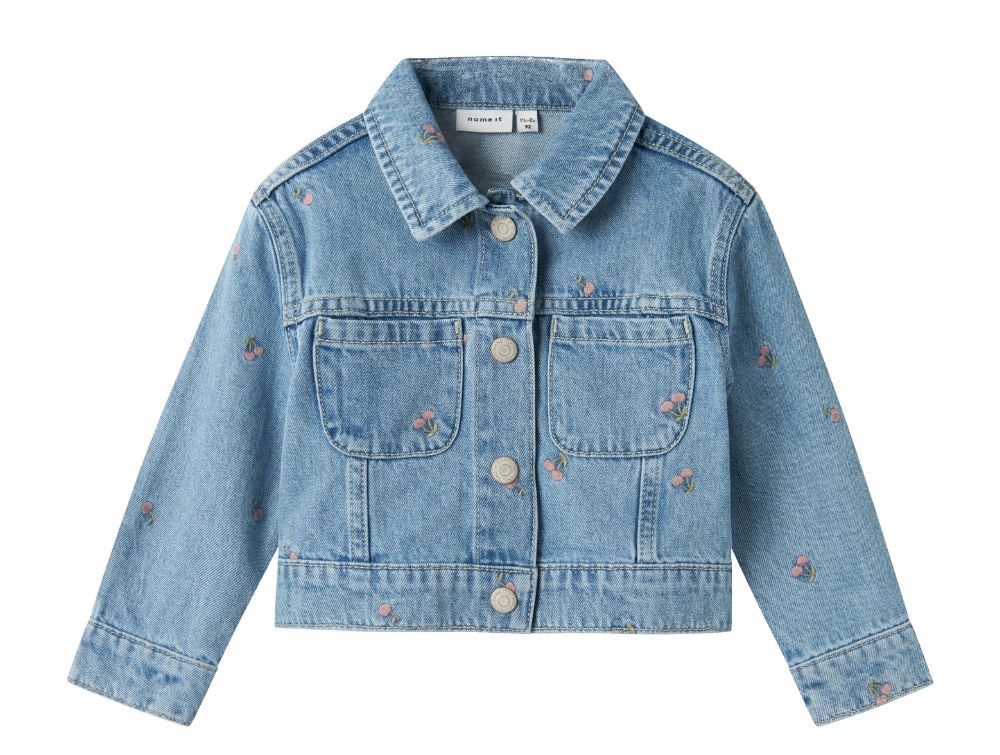 Mere information om Name It jakke lys blå denim med kirsebærbroderi