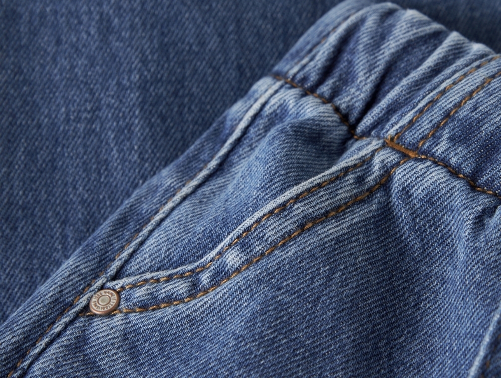 Den bløde denimkvalitet har en let struktur og giver god bevægelsesfrihed. Materialet består af bomuld og bomuld (genanvendt), som giver en smidig kvalitet til hverdagsbrug.