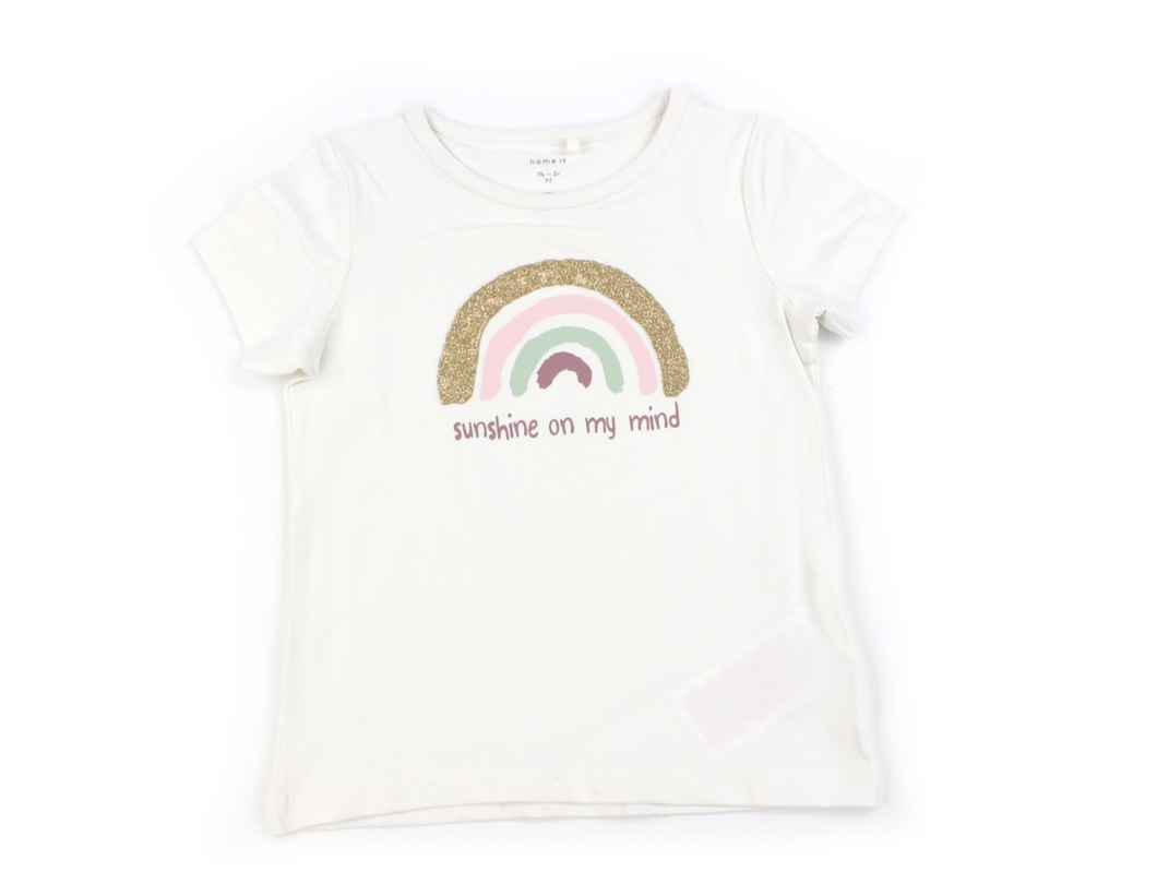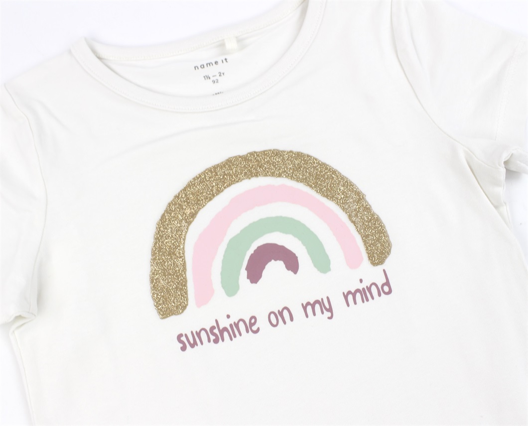 T-shirt i farven jet stream med regnbueprint og sødt statement-tekstprint fra Name It.