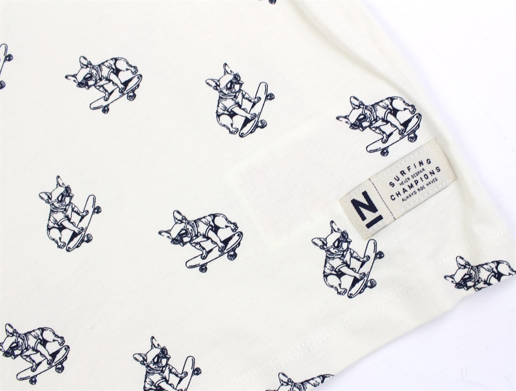 T-shirt i farven jet stream med cool print af skaterhund fra Name It.
